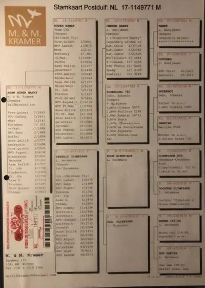 Retired Andre van de Wiel is a top player from division 3 East Brabant. In 2021 he came to us to buy a couple of pigeons. A cock and an hen were named Kras Martijn and Blauwe Marit. And out of that came the Jong Kramertje. Not without merit: