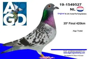 Chris Weber was able to secure ‘Algo Trader’ – NL19-1549257 – M – last year. A cock that flew 35th place over 420 km in the final of the AGD 2019. That is the father of 2 youngsters in Chris Weber’s loft, the ‘474’ and the ‘473’.