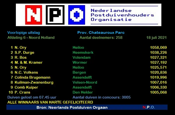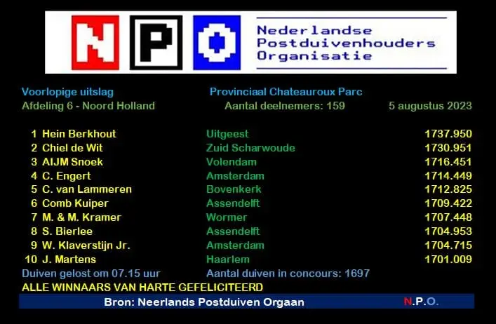 Klik hier voor ´de 057´ – 7e NPO Chateauroux – uit lijn ´De Witoger´(zoon van ‘605’ van Van Rijn) x ‘Lieve’ (dochter ‘TGV’)