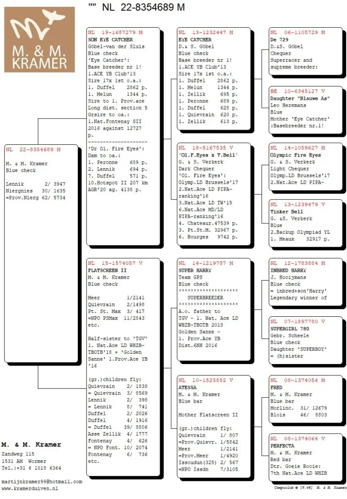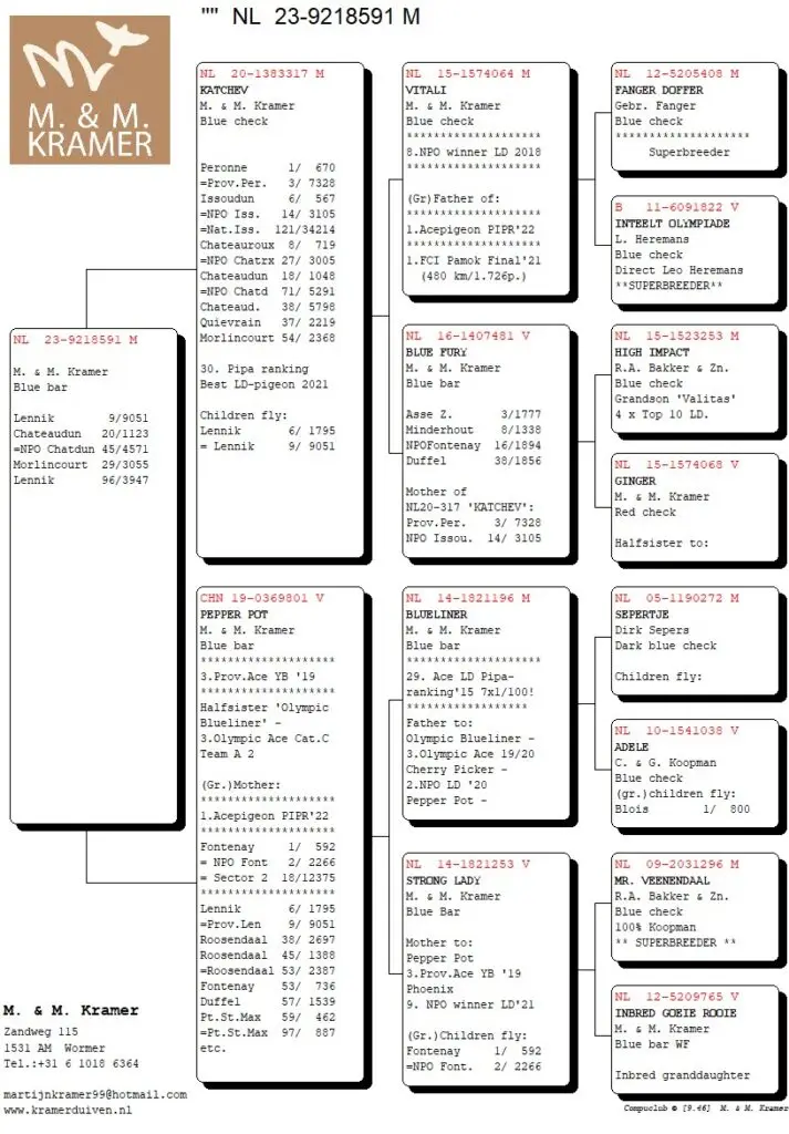 De blauwband doffer die als eerste aantikte is de 591. Hij kwam de afgelopen weken steeds beter, dus daarom bij de bovenste 3 duiven gezet. Zoon van Katchev, de duif die in 2022 gered is van een booreiland 300 km in de Noordzee.