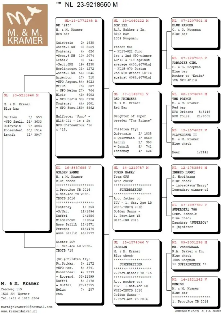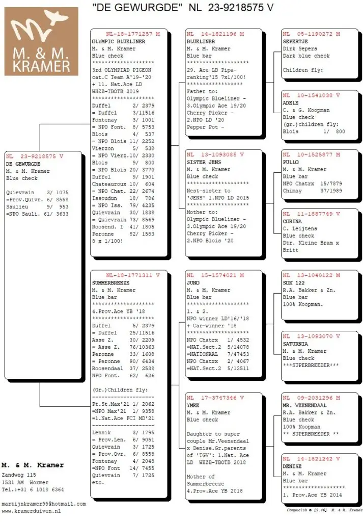 Comb. Kuiper, Assendelft speelt met de ‘921’ de 5e NPO op Saulieu tegen 3.633 duiven en de 1e in Kring 3 en de ZCC. Deze duivin heeft als vader Son of Juno. Deze doffer hebben we verkocht aan Pascal Jongsma en hij heeft een samenkweek gedaan met de combinatie, waar dus de ‘921’ een resultaat van is.
