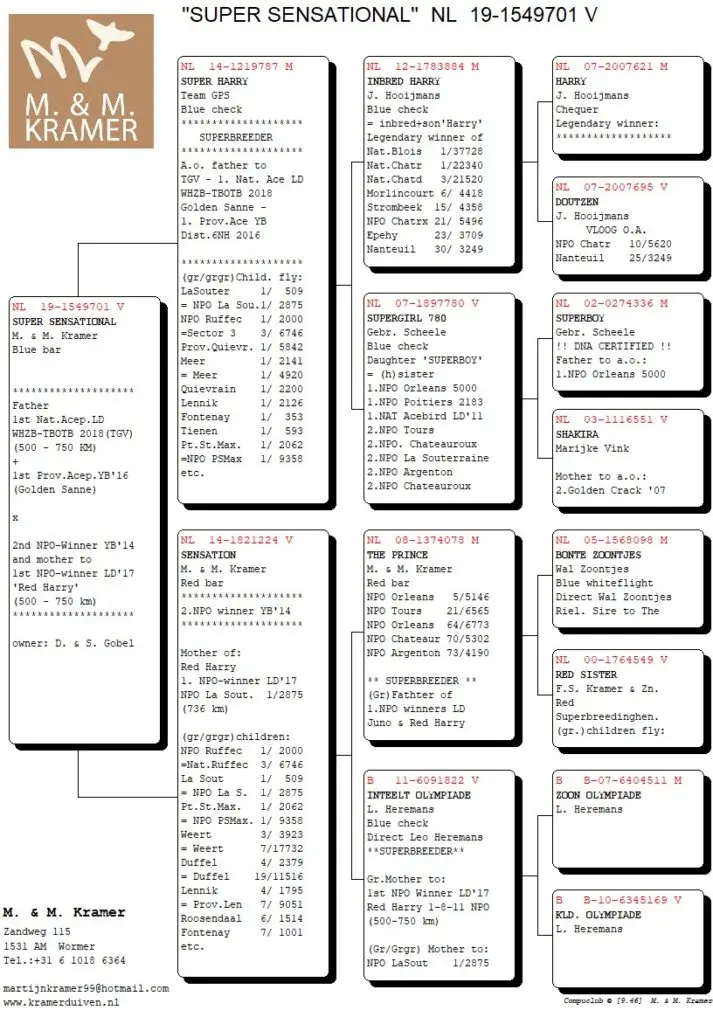 Ik hoorde dat de heer D. Lodder (ik ken de man zelf niet persoonlijk) op Arras-Grevilliers de 1e speelde in afdeling 5 tegen 25.917 duiven. De moeder van deze duif zit bij Stephan Göbel, maar komt bij ons vandaan. Dochter van Super Harry x Sensation, dus een volle zus van Red Harry. Stephan heeft de heer Lodder twee eitjes gegeven uit de ‘701’….
