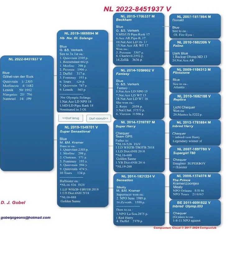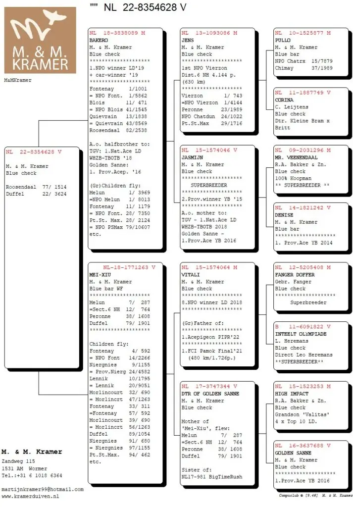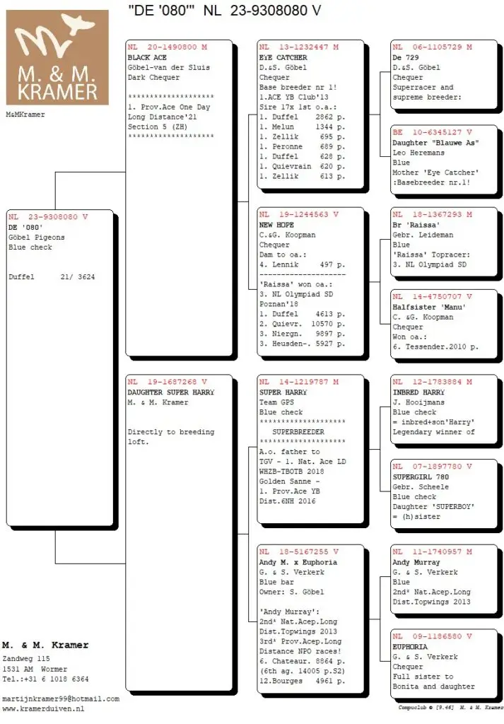 Dick en Stephan Göbel vlogen in Rayon Midden van Afd. 5 de 8e tegen 9.250 duiven. Het was de duivin ‘937’  die hiervoor zorgde. De moeder van deze duivin (701) komt bij ons vandaan en is een zus van onze Red Harry, 1e NPO La Souterraine.